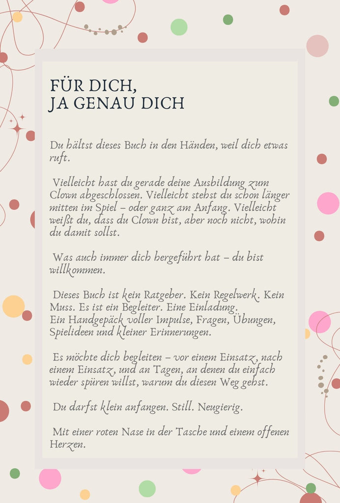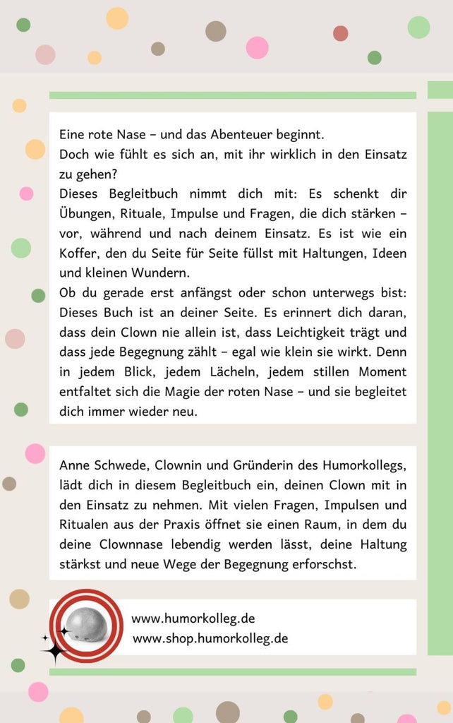 Da ich selbst als Kinderclown arbeite – auf Festen, in Seniorenheimen und Einrichtungen für schwerbehinderte Menschen – konnte ich mich in vielen Passagen wiederfinden. Besonders berührt hat mich, dass das Buch auch die stillen, tiefen Seiten unseres Berufs zeigt. Diese Perspektive wird mir sicher auch in meiner neuen Aufgabe als Trauerclown für Kinder helfen.
